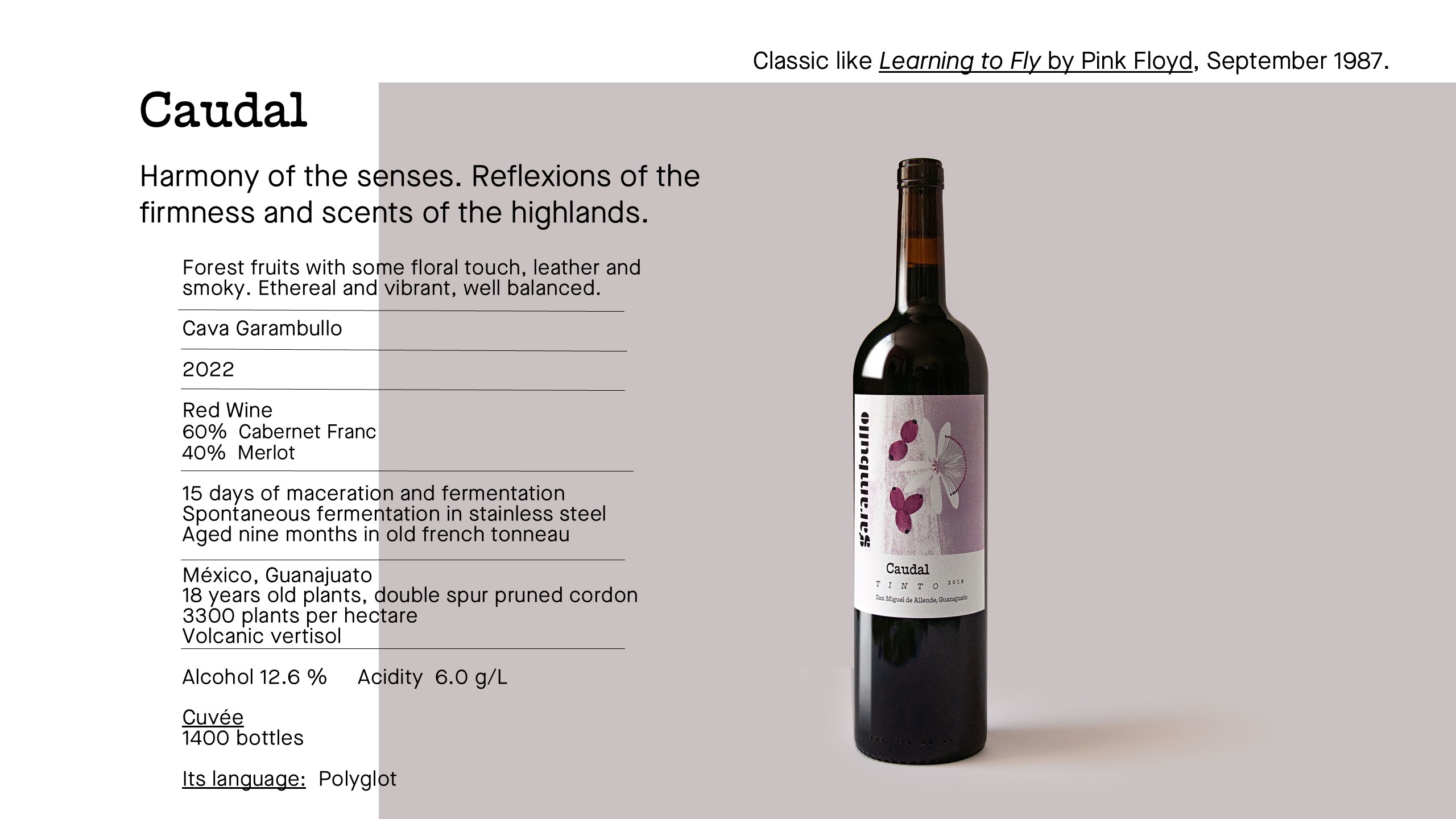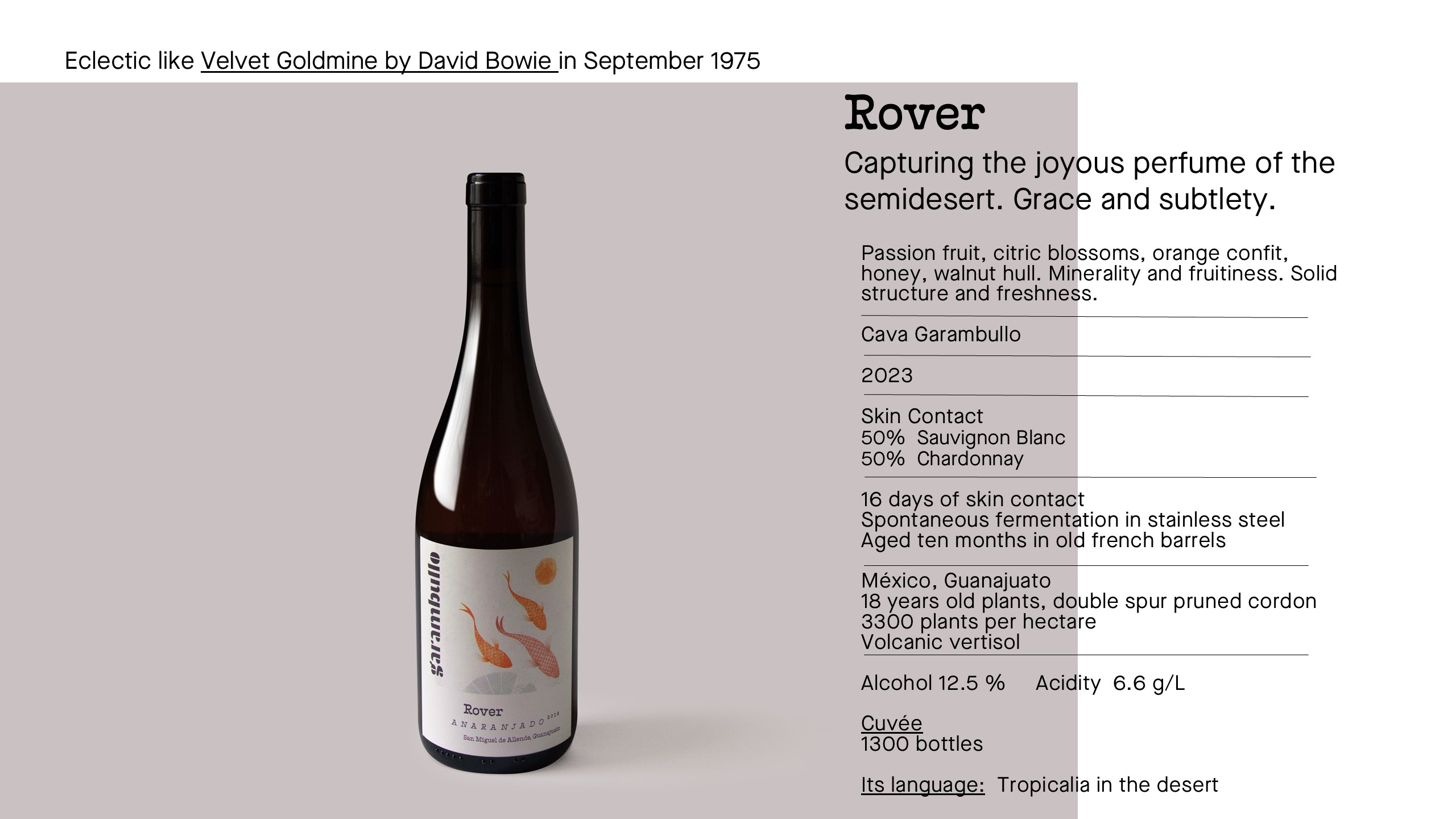 A dream embodied to make wine from natural fermentation while investigating new styles of wines in the central region of Mexico. It is a unique project consisting of two winemakers from two different cultures and traditions, who decided, on the basis of their scientific training, to immerse themselves in the search for a meaningful product suitable to the era in which we live.